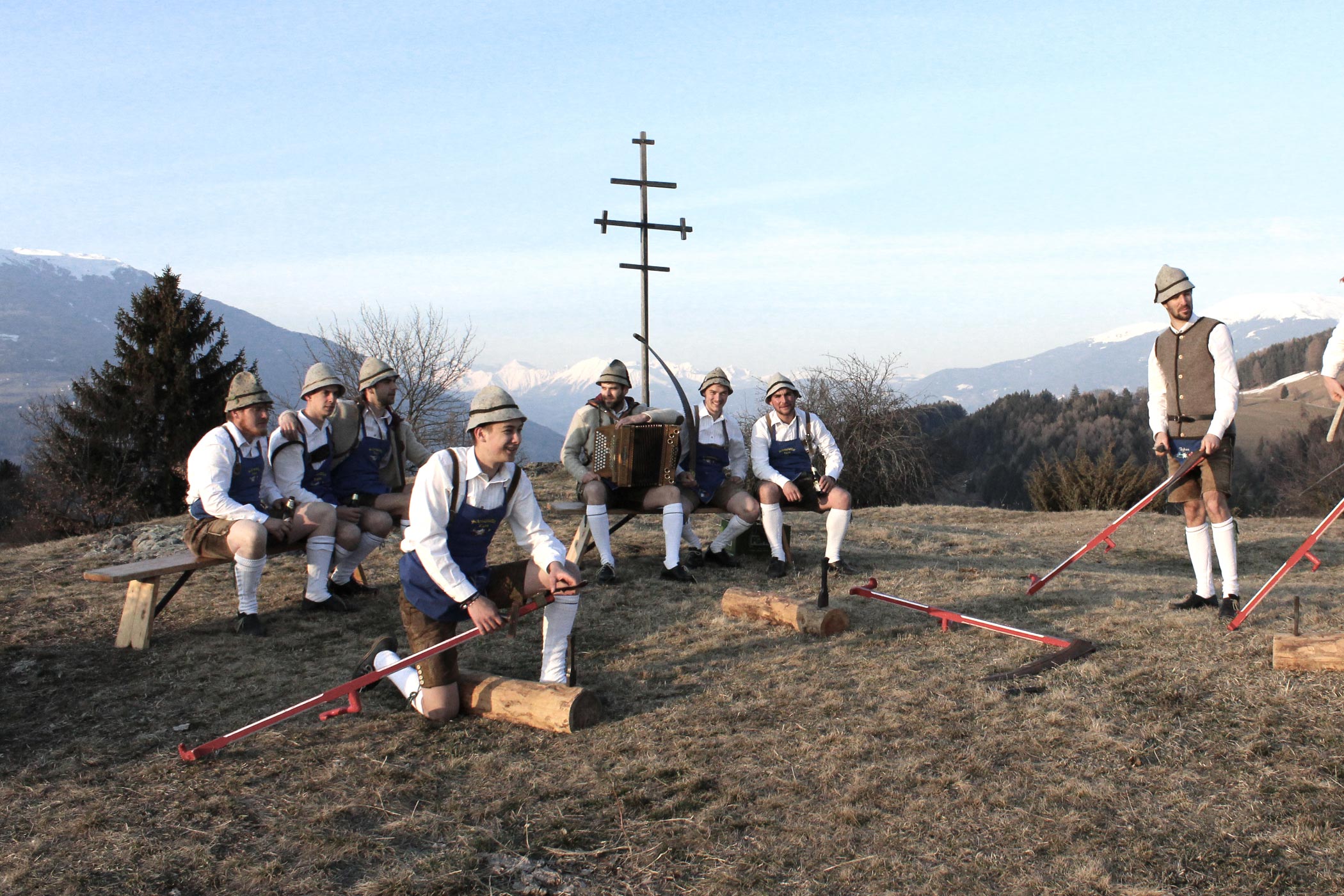 Wenn die Lajener Schuaplattler in die Lederhosen hüpfen, Bänke, Sense und Beil ins Auto packen, um zu einem Auftritt zu starten, können sich die Zuschauer auf so einiges gefasst machen. Die Plattler werfen sich gegenseitig in die Luft, hauen sich auf Wadl und Sohlen und juchzen was das Zeug hält.